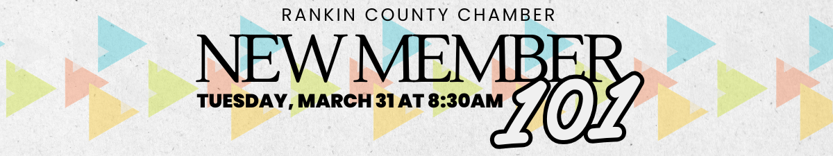 Join us for the New Member Orientation on Tuesday, 3/31, at 8:30am at Community Bank Waterpointe! This is a great opportunity for all members (new and current) to learn more about Chamber benefits and opportunities. It is also a great time to meet other business owners and representatives across Rankin County. This is a come-and-go event.